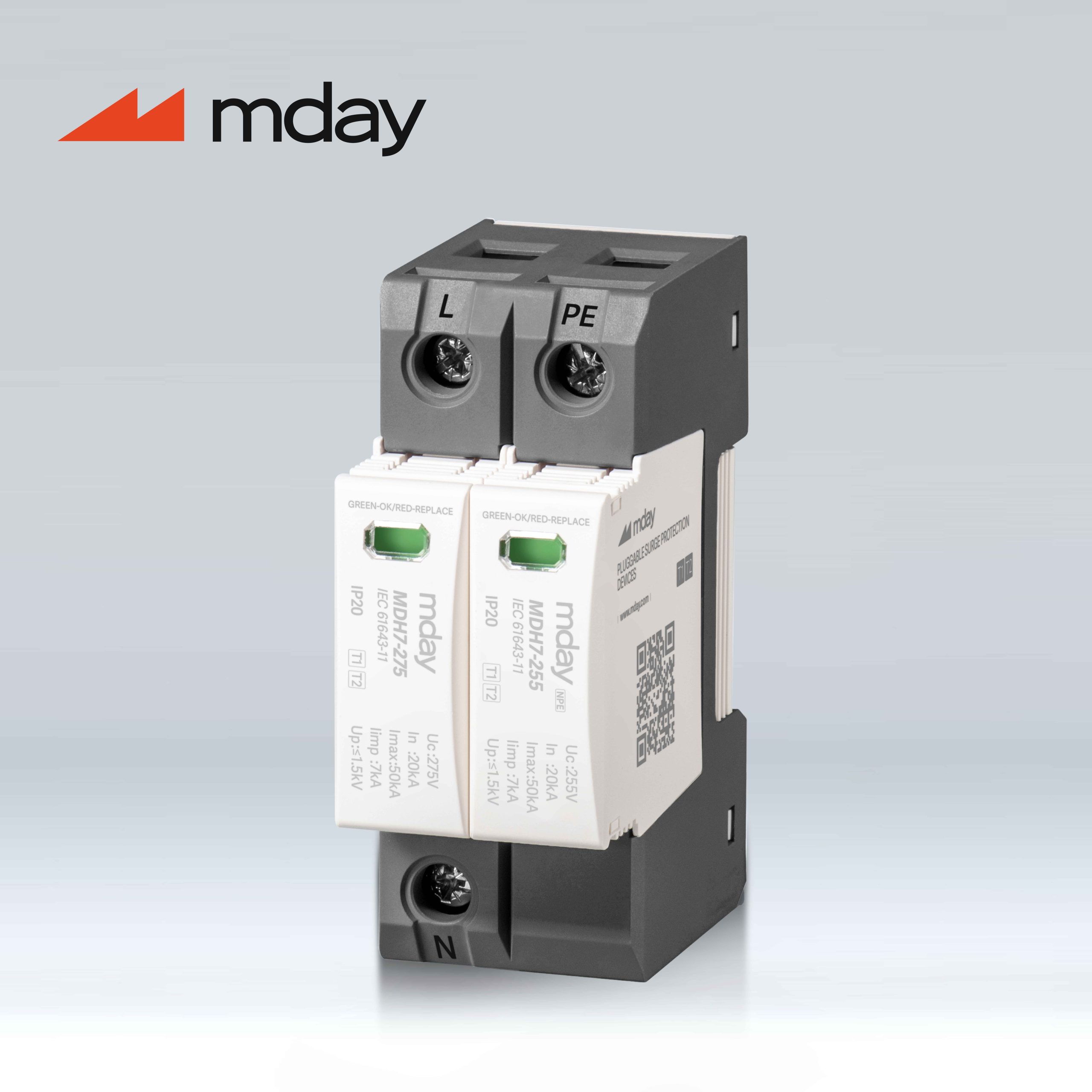 سرج ارستر 50 کیلوآمپر، 275 ولت، 2 پل، برند Mday، مدل MDH7-AC-1P+NPE